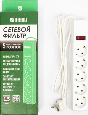Сетевой фильтр Юнивольт 00-00000389 1.5м (5 розеток) белый (коробка)