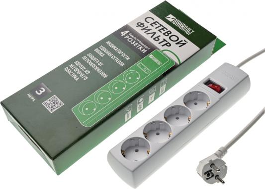 Сетевой фильтр Юнивольт 00-00000449 3м (4 розетки) белый (коробка)
