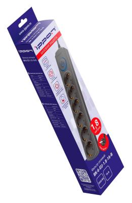Сетевой фильтр Ippon BK-6-EU-1.8-16-B 1.8м (6 розеток) черный (коробка)