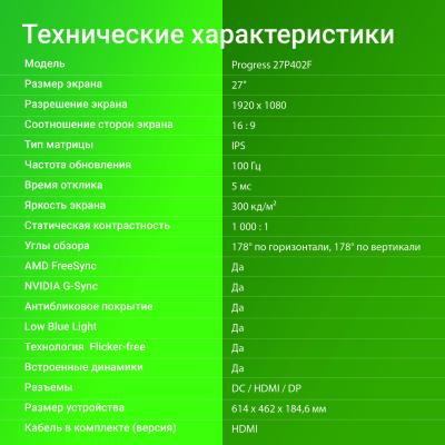 Монитор Digma 27" Progress 27P402F черный IPS LED 5ms 16:9 HDMI M/M матовая 300cd 178гр/178гр 1920x1080 100Hz G-Sync DP FHD 4.3кг