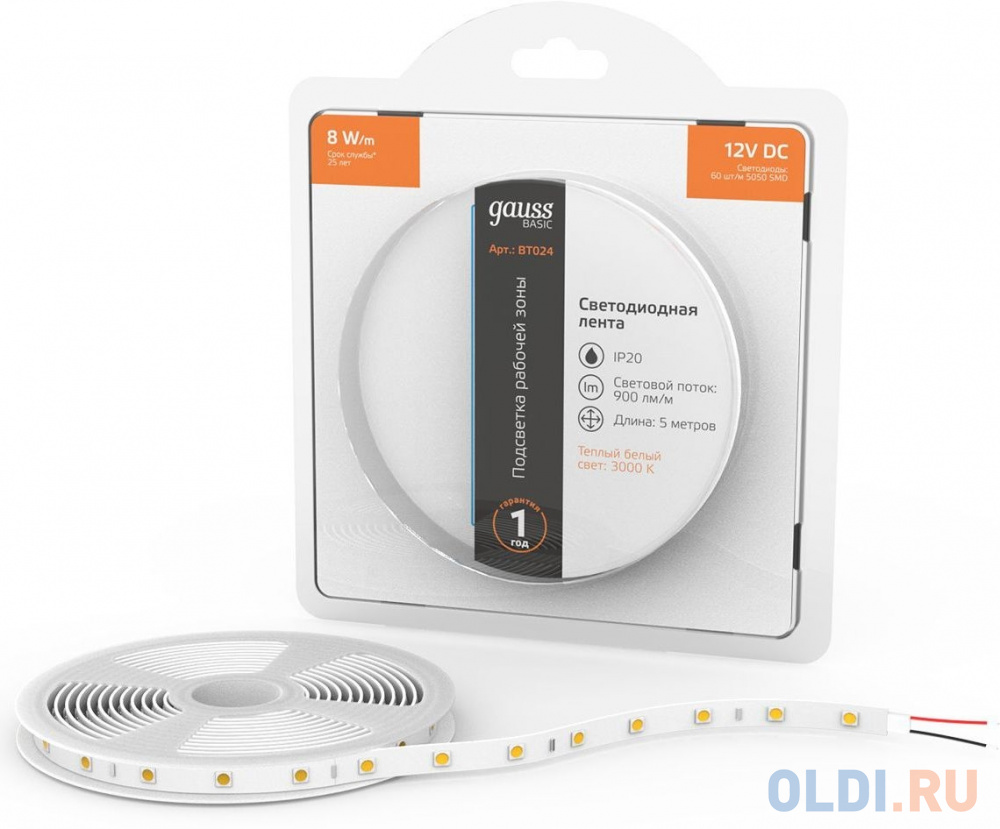 Лента светодиод. Gauss Basic 5м (BT024)![]()