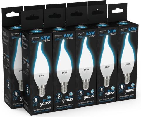 Лампа светодиодная Gauss 104101307 6.5Вт цок.:E14 свеча 220B 6500K св.свеч.бел.хол. (упак.:10шт)