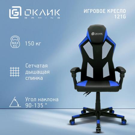 Кресло игровое Оклик -121G черный/синий сиденье черный/синий искусст.кожа/сетка с подголов. крестов. пластик черный