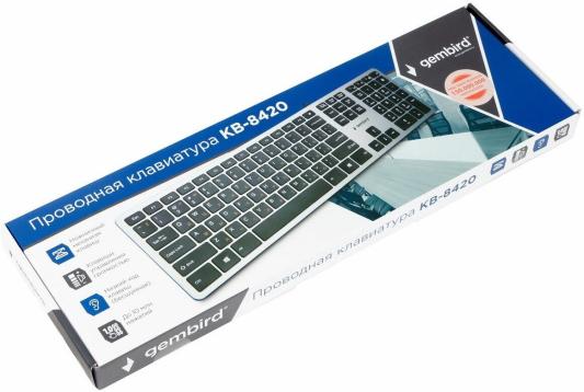 Клавиатура ноутбучного типа Gembird KB-8420,{USB, ножничный механизм, клавиши управления громкостью, 104 клавиши, кабель 1,5м}