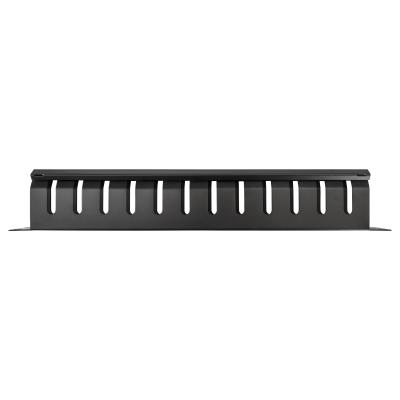 Кабельный органайзер ExeGate CM19-1U-12M-CV (горизонтальный 19" 1U, металлический, 2 окна в основании профиля, гребенка на 12 вырезов, глубина 45mm, с металлической крышкой на защелках, цвет черный, RTL)