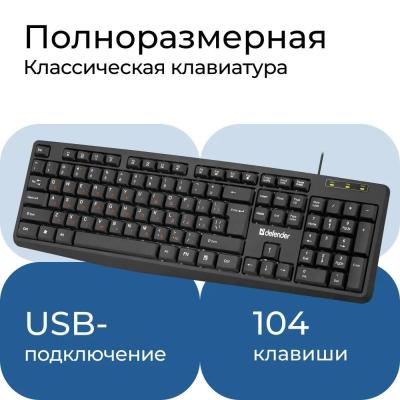 Клавиатура проводная Defender Concept HB-164 black (USB, 104 кл. +12FN) (45164)