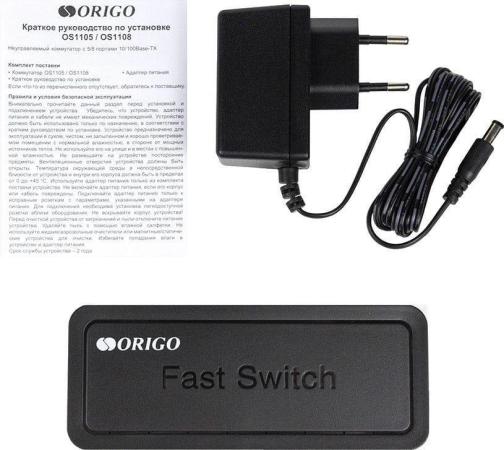 коммутатор OS1108 - 1 шт, адаптер питания - 1 шт, документация