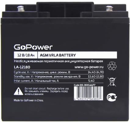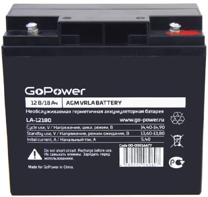 Аккумулятор свинцово-кислотный GoPower LA-12180 12V 18Ah (1/2)