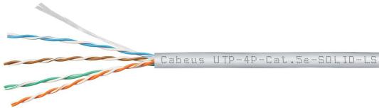 Cabeus UTP-4P-Cat.5e-SOLID-LSZH-GY Кабель витая пара UTP (U/UTP), категория 5e, 4 пары (24 AWG), одножильный, серый, LSZH, нг(А)-HF, (305 м)