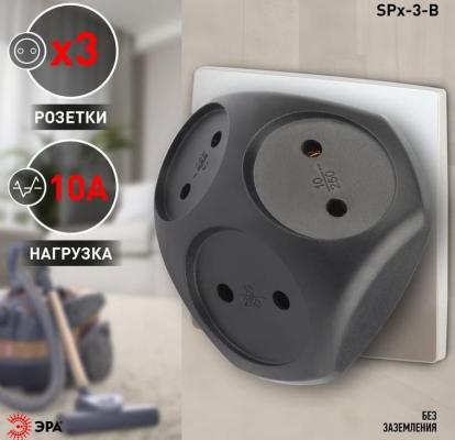 ЭРА Б0059721 Разветвитель электрический SPx-3-B на 3 розетки без заземления 10А черный