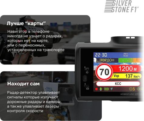 Видеорегистратор с радар-детектором Silverstone F1 Hybrid UNO SPORT 4K WiFi GPS ГЛОНАСС