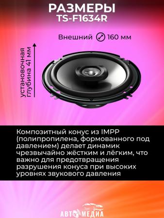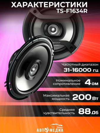 Колонки автомобильные Pioneer TS-F1634R (без решетки) 88дБ 4Ом 16см (6дюйм) (ком.:2кол.) коаксиальные двухполосные