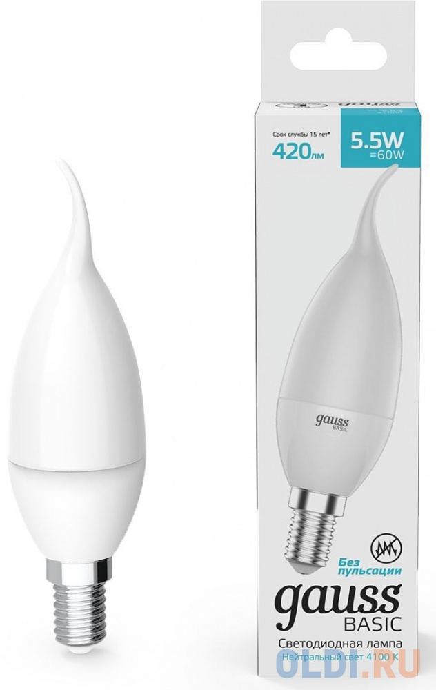 Лампа светодиодная Gauss Basic 1034116 5.5Вт цок.:E14 свеча 180B 3000K св.свеч.бел.теп. (упак.:10шт)![]()