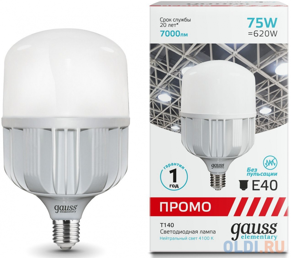Лампа светодиодная Gauss Elementary 60428 75Вт цок.:E40 цилин. 220B 4100K св.свеч.бел.нейт. (упак.:1шт)![]()