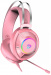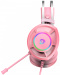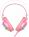 Гарнитура игровая проводная EH469 Pink (розовый), пара кошачьих ушек в комплекте, подсветка RGB, подключение USB, длина кабеля 2.4м