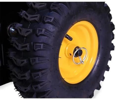 Колеса позволяют легко передвигаться по укрепленной поверхности, а рукоятки управления с панелью и стойка рукояток обеспечивают комфортную работу. Тяга рычага переключения передач в сборе и ручка рычага управления дефлектором желоба также включены.