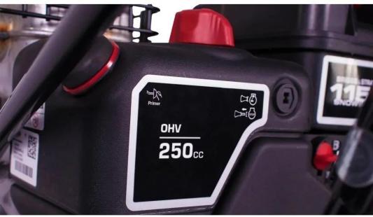 Этот бензиновый снегоуборщик оснащен мощным двигателем 6,5 л.с., что обеспечивает быструю работу даже в сложных условиях. Ширина обработки составляет 61 см, глубина - 54,5 см, а объем топливного бака составляет 3 литра.