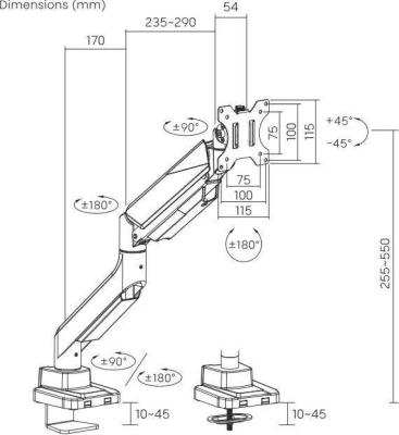 ДополнительноНастольный кронштейн для монитора с системой газ-лифт.