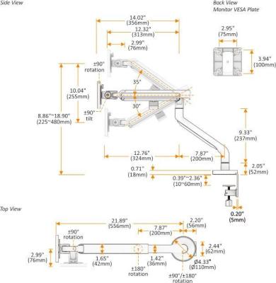 Кронштейн для мониторов Ultramounts UM725W белый 17"-32" макс.9кг крепление к столешнице поворот и наклон