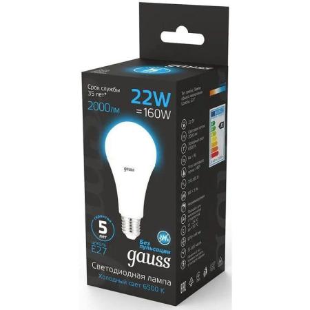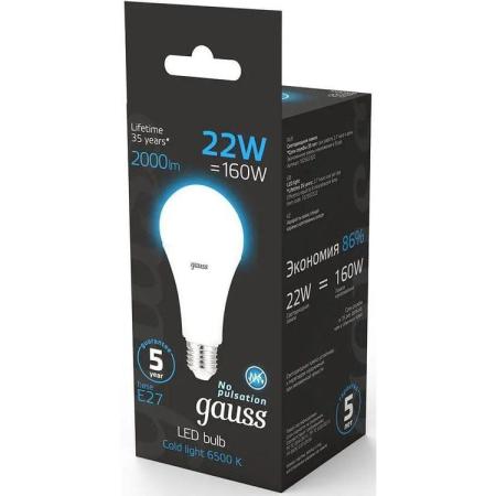 Лампа светодиодная Gauss 102502322 22Вт цок.:E27 груша 220B 6500K св.свеч.бел.хол. (упак.:1шт)