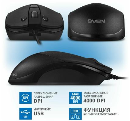 Мышь SVEN RX-100 чёрная (USB, 6 кнопок, 4000 dpi)