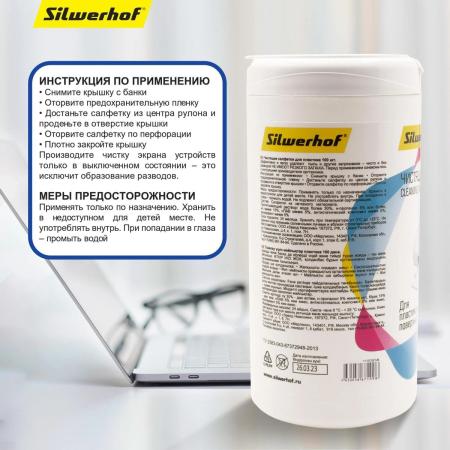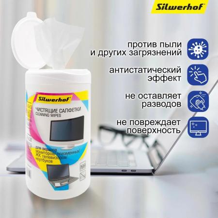 Влажные салфетки Silwerhof 671214, 100 шт (туба) для экранов мониторов/плазменных/ЖК телевизоров/ноутбуков