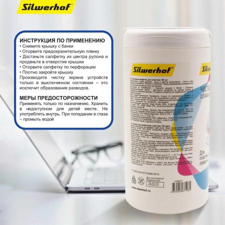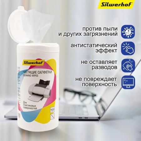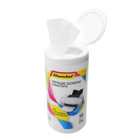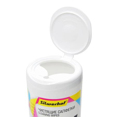 Влажные салфетки Silwerhof 671215, 100 шт (туба) для компьютеров и оргтехники