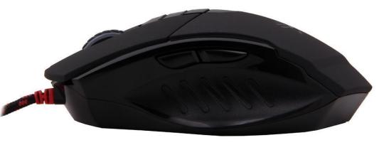 A4Tech Bloody V7 game mouse Black USB отличается предельно брутальным дизайном, а ее дизайн спроектирован таким образом, чтобы руки играющего не уставали на протяжении долгих часов. В частности, это касается ребристых резиновых накладок, снимающих напряжение с кисти и сводящих на нет возможность выскальзывания мышки из потной ладошки.
