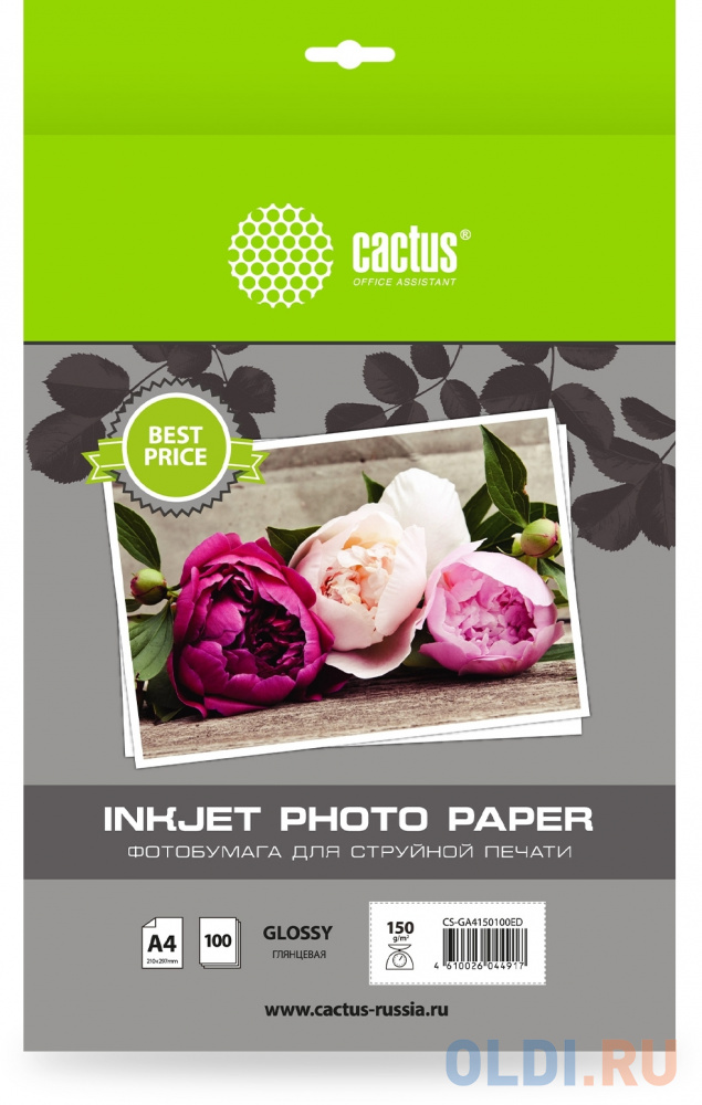 Фотобумага Cactus CS-GA4150100ED A4 / 150г / м2 / 100л. / белый глянцевое для струйной печати![]()