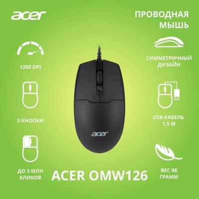 Мышь Acer OMW126, оптическая, проводная, USB, черный [zl.mceee.010]