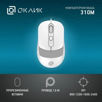 Мышь Oklick 310M, оптическая, проводная, USB, белый и серый [1869103]