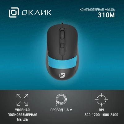 Мышь Oklick 310M, оптическая, проводная, USB, черный и синий [1869099]