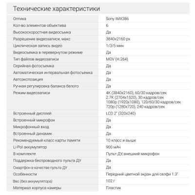 Совместимость с аксессуарамиОсновное крепление Крепление на руль велосипеда Крепление для плоской поверхности Адаптер-кронштейн 1 Адаптер-кронштейн 2 Рамка Повязка-бандаж Пульт ДУ Внешний микрофон