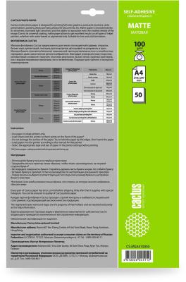 Фотобумага Cactus CS-MSA410050 A4/100г/м2/50л./белый матовое самоклей. для струйной печати