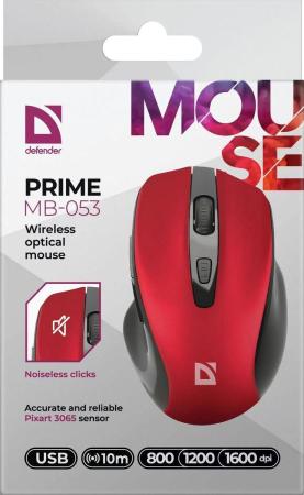 Defender Мышь беспроводная оптическая Prime MB-053, USB, 800/1200/1600 dpi, красный.