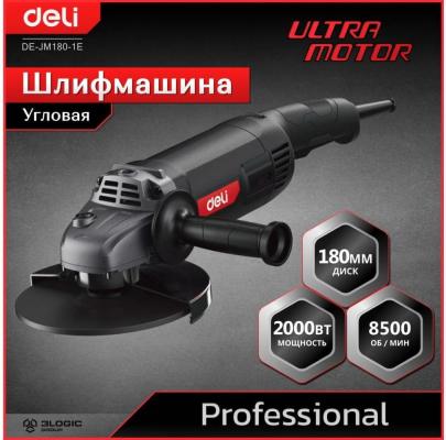 Угловая шлифмашина сетевая Deli DE-JM180-1E (2000Вт, 180мм, 8500об/мин, картон)
