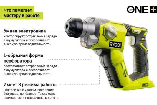 Компактные габариты Ryobi ONE+ R18SDS-0 5133002305 для большего удобства при работе;