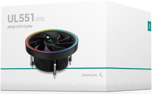 Вентилятор для процессора DEEPCOOL UL551 1700 ARGB (Soc-1700, Al, PWM 1800rpm, 26.8 dB, 90mm, 4 pin/3 pin, 60Wt) (R-UL551-BKAMAB-G-17)