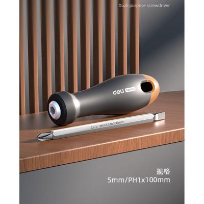 Двухсторонняя отвертка "Home Series Gray" Deli HT1055C SL5+PH1, длина жала 100мм, эксклюзивный дизайн, рукоятка из высококачественного софттач пластика