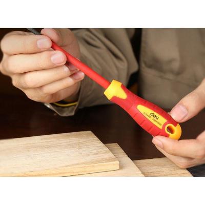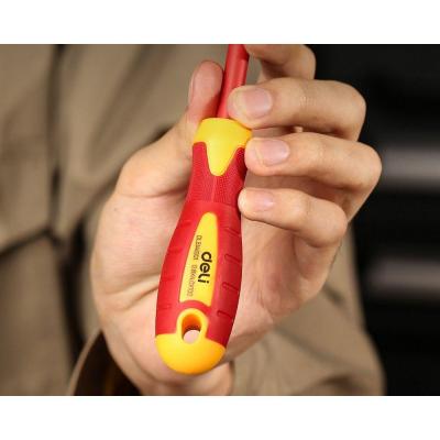 Диэлектрическая шлицевая отвертка Deli DL5141001 4х100мм сталь Cr-V, сертификат VDE для работ под напряжением до 1000 В.