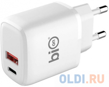 Bion Сетевое Зарядное Устройство, USB-A + USB-C, PowerDelivery, 18 Вт, белый [BXP-ADP-PD-AC-18W]