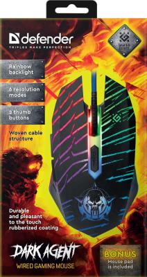 Проводная игровая мышь Defender Dark Agent GM-590L 6 кнопок,12800dpi [52590]