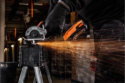 Металлический защитный кожух поворачивается на 44 градуса и обеспечивает безопасную работу.