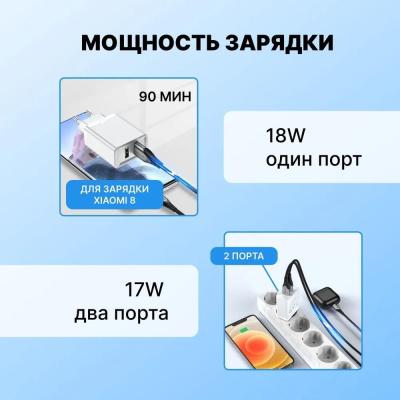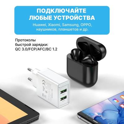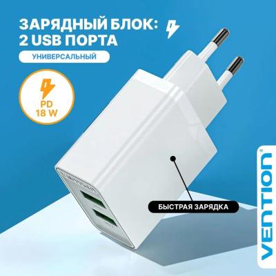 Сетевое зарядное устройство Vention на 2 порта USB (A+A) QC 3.0 Белый