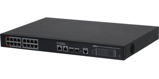 DAHUA DH-S4220-16GT-240 20-портовый гигабитный управляемый коммутатор с PoE, уровень L2, 16xRJ45 1Gb PoE, 2xRJ45 1Gb, 2xSFP 1Gb, суммарно до 240Вт, коммутация 56 Гбит/с, MAC-таблица 8к, металл