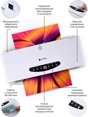 Прочие особенности и свойстваЧетырех валовый ламинатор бумаги ГЕЛЕОС ЛМА4-4В – это функциональное устройство, предназначенное для ламинирования документов формата A4 и меньше. Его характеристики и возможности делают его отличным выбором для различных областей применения, включая школы, офисы и домашнее использование.