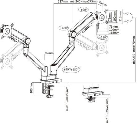 Кронштейн для мониторов Ultramounts UM733W белый 17"-32" макс.8кг настольный поворот и наклон