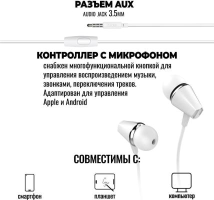 HOCO M34/ Наушники + микрофон/ Многофункциональная кнопка/ 1.2м/ 3.5 mm jack/ White