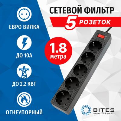 5bites Сетевой фильтр GARDA SP5B-518 5S / 3*0.75MM2 / 1.8M / BLACK