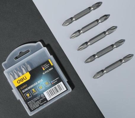 Набор двухсторонних бит 10 шт Deli DL6902 PH2*65мм, сталь S2 с твердостью 58-60HRC, пласт.кейс